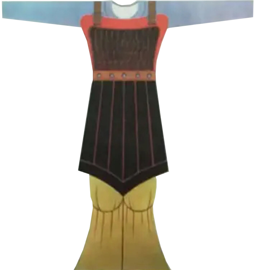 裲(liǎng)裆( dāng ),又名“两裆”,是盛行于魏晋南北朝时期的一种服饰。《释名·释衣服》中说:“两档(同“裆”),其一当胸,其一当背,因以名之也”。据此可以看出,裲裆由两部分组成,一部分挡住胸口,一部分挡住背,其形制与现在的背心相仿。