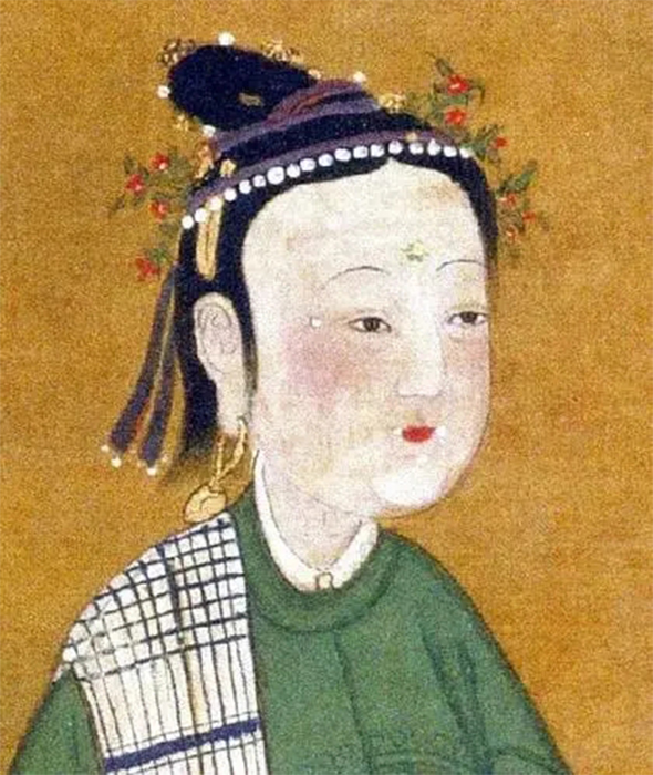 明代流行的面妆手法为“三白法”,即在额头、鼻子和下颚三个部分晕上夸张的白粉。