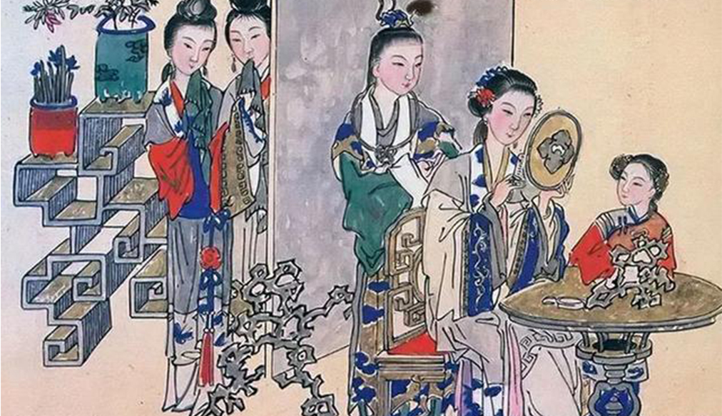 女子的妆容也非常崇尚淡雅简素的风格,有点类似于我们现在所说的“裸妆”,整体上强调的是“面如凝脂,眼如点漆,眉黛烟青”。