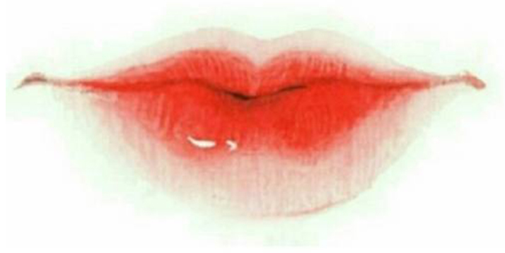 这一时期的唇妆比较自然,虽然“樱桃小嘴”依然是主流审美,但基本还是按照唇形进行勾勒,重点放在整个唇部的内侧,类似于今天的咬唇妆。
